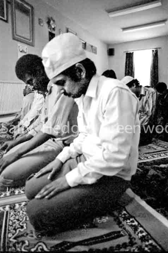 London Central Mosque and The Islamic Cultural Centre, 1984. The Imam, Sheikh Zahran Ibrahim, kindly gave me permission to visit and photograph for the day. Sadly he has now passed away, my sincere thanks to Siddika Talukdar.